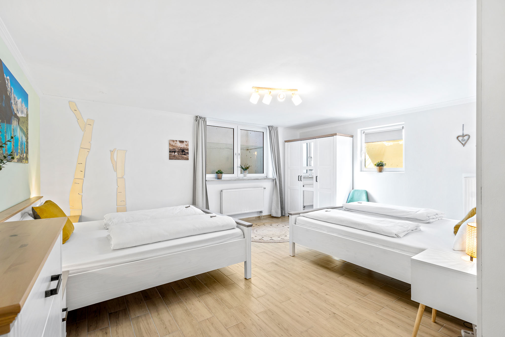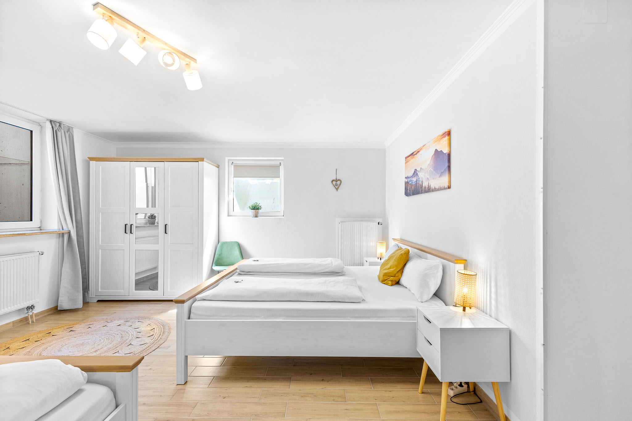 Garten, Bergluft und Platz für Mensch und Tier! In dieser schönen Wohnung mit kleinen Garten sind auch Vierbeiner willkommen. Ein schönes Schlafzimmer mit Doppelbett, ein Wohn-/Esszimmer mit Schlafplatz dank Schlafsofa mit Topper und einem großen, gemütlichen Schlafzimmer im Maisonette Stil im Untergeschoss mit zwei weiteren Doppelbetten sorgen für einen erholsamen Urlaub für die ganze Familie. Abgerundet wird die Wohnung durch ein Bad mit Badewanne und einer vollwertig ausgestatteten Küche.